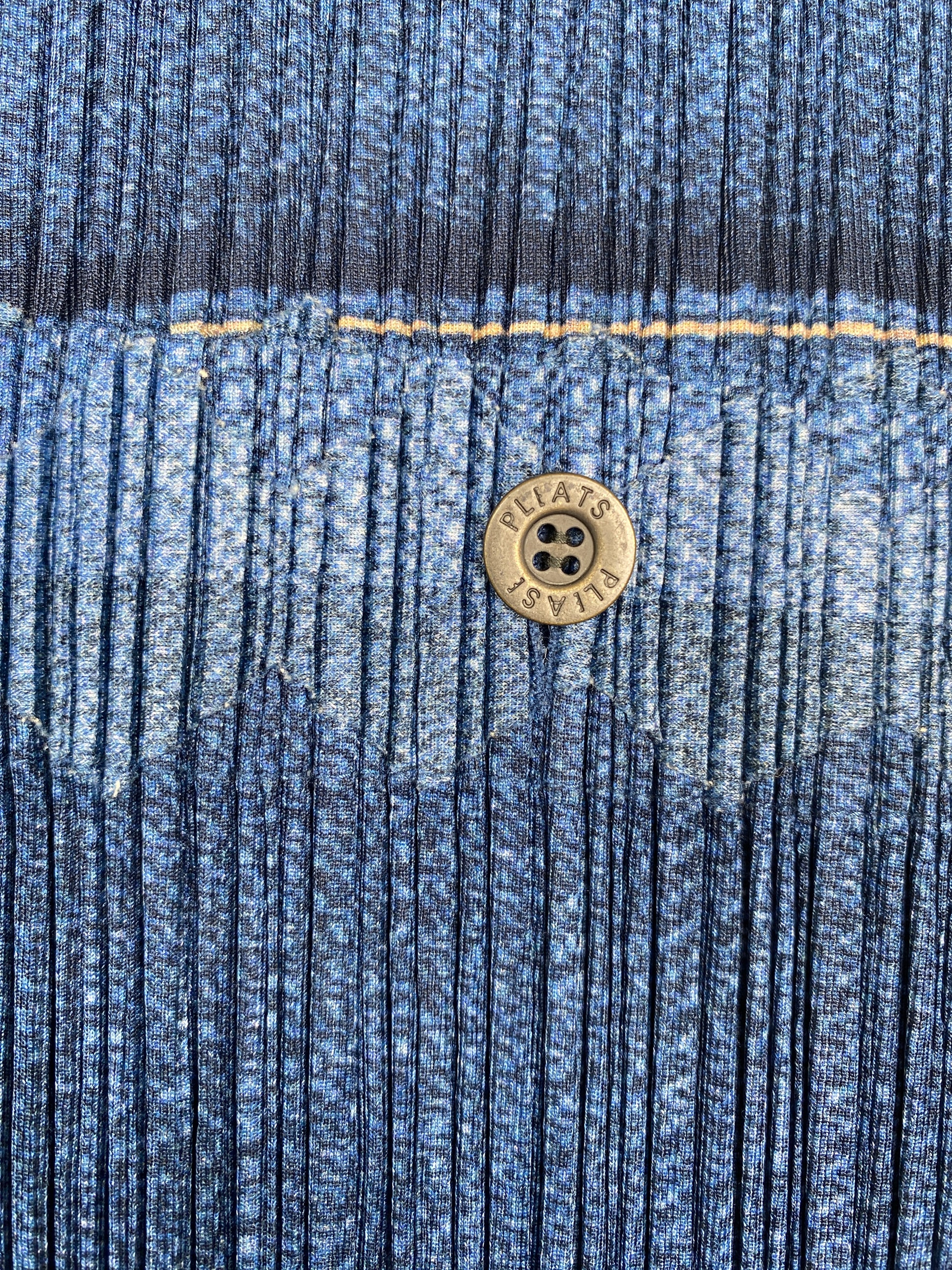 ISSEY MIYAKE PLEATS PLEASE blue denim tromp loeil print 3D cut pleated Dress. Rare.