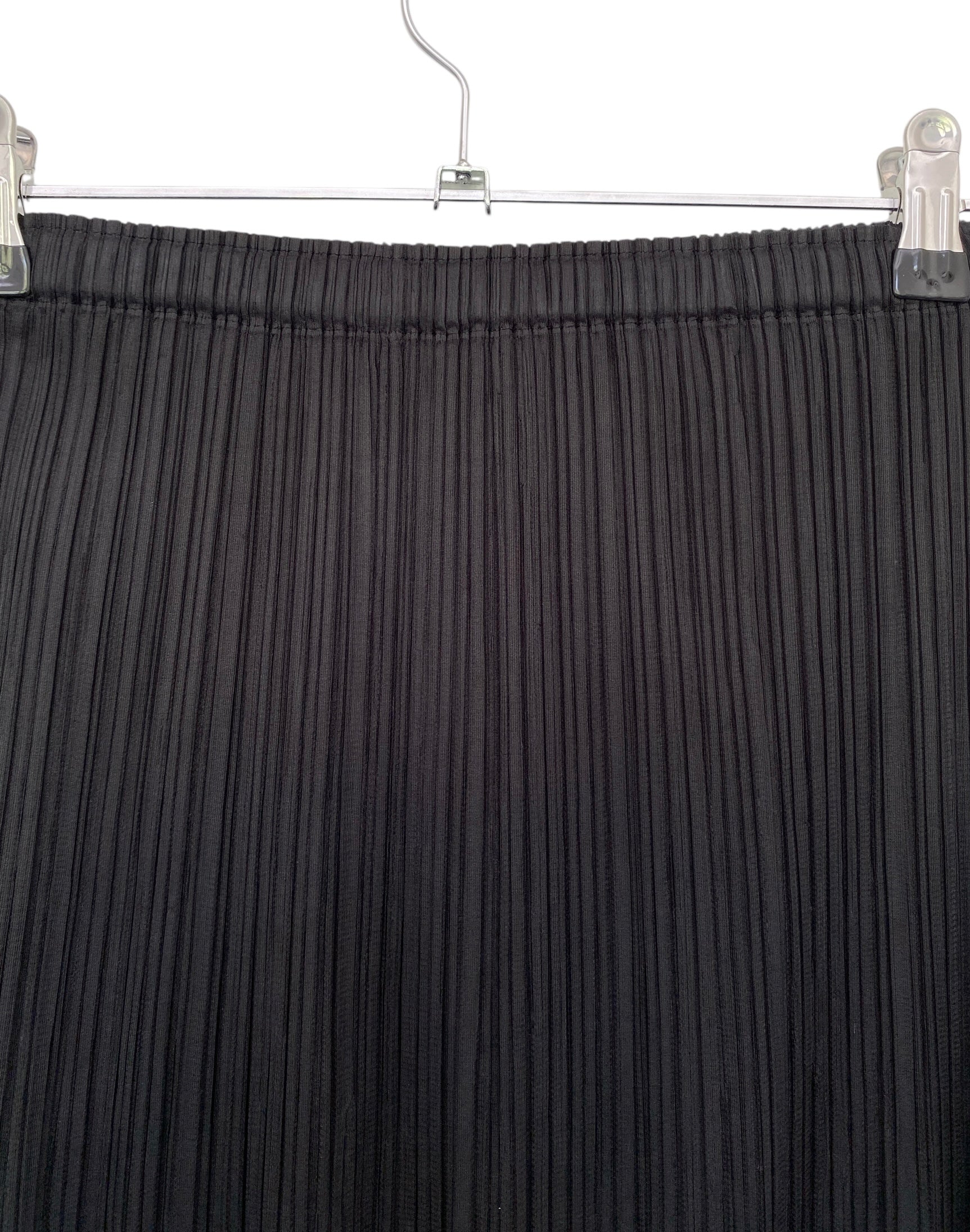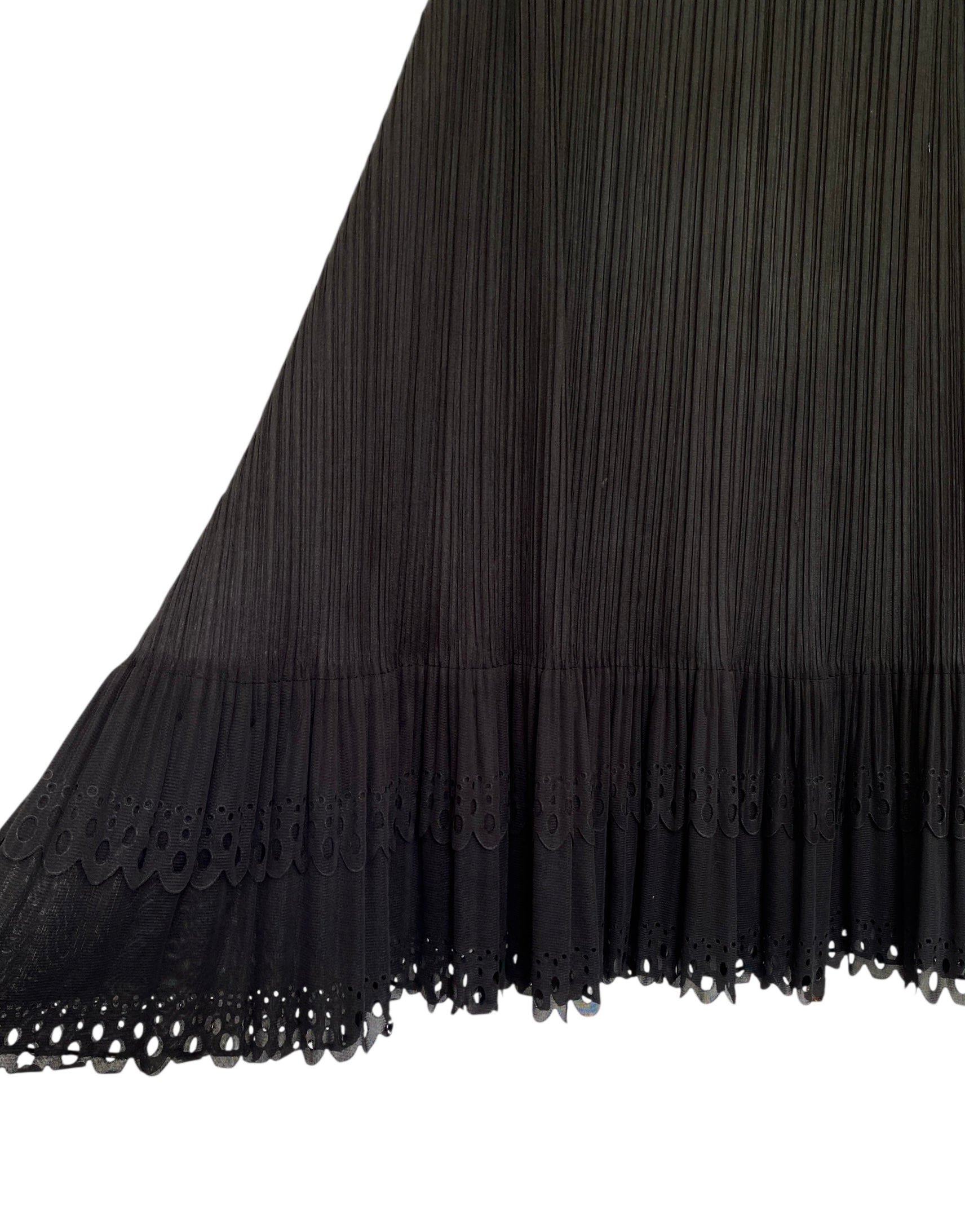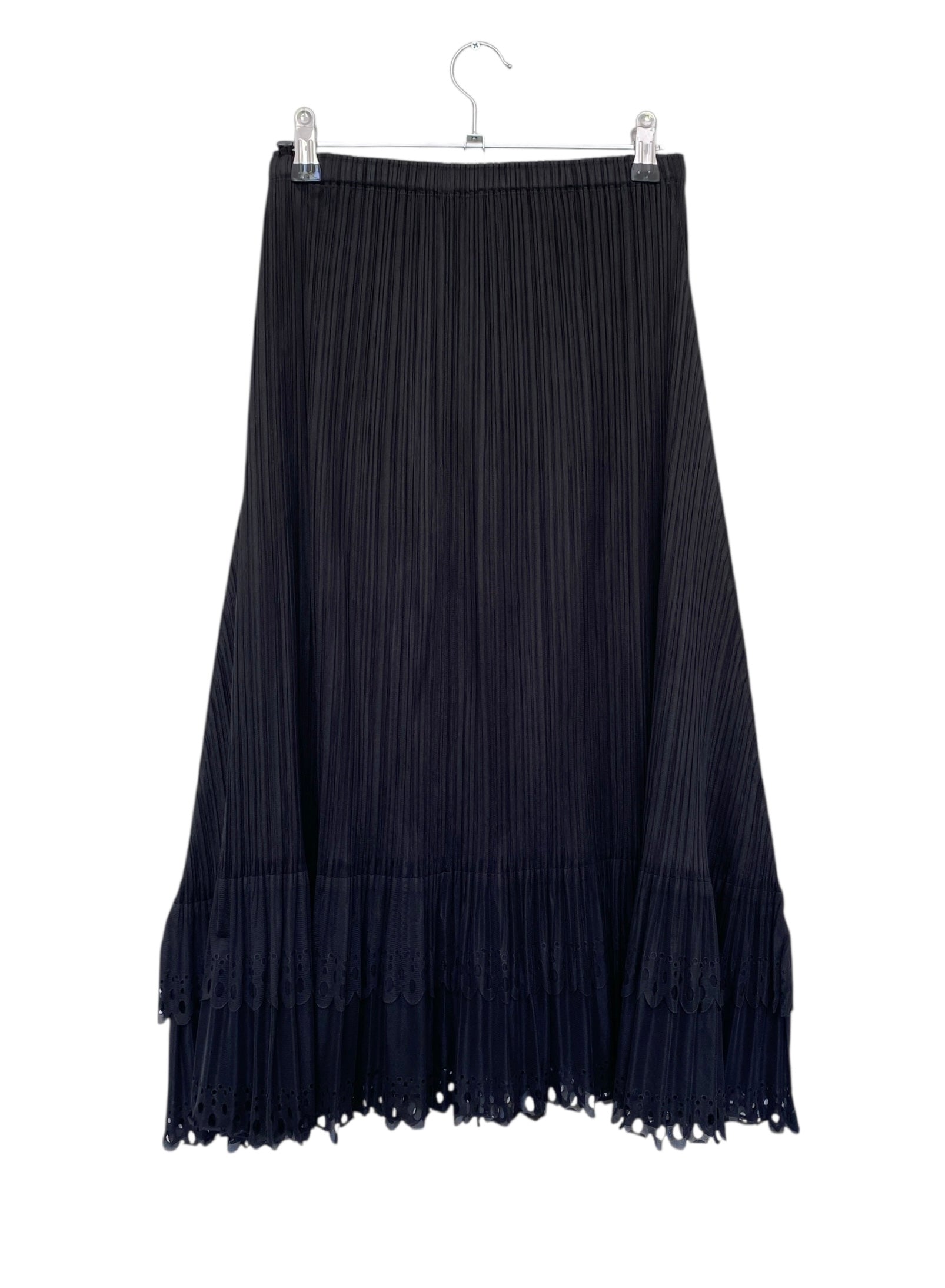 PLEATS PLEASE ISSEY MIYAKE Midi Skirt with ruffled cut out hem detail.